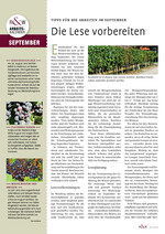 Beginnen Sie mit den Lesevorbereitungen dieses Jahr früher. Der Erntebeginn muss sehr sorgfältig abgewogen werden. Trotz hoher Mostgewichte sind die Trauben noch nicht physiologisch reif. Wartezeiten und Wetterprognosen in die Berechnung mit einbeziehen. Grundsätzlich sollte die Schadvogelabwehr Anfang September beginnen. In Gebieten mit Trockenstress und anhaltender Trockenheit ist die Bewässerung mit acht bis zwölf Liter pro Stock im Vierbis SiebenTagesRhythmus zur Stockerhaltung und Aromabildung in der Traube sinnvoll. Beachten Sie, dass das Wasser die Wurzeln erreicht. Oberirdische Gaben verdunsten sehr schnell.